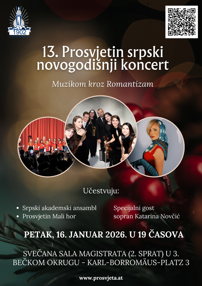 U organizaciji SPKD Prosvjeta Austrija održaće se 13. Prosvjetin srpski novogodišnji koncert.